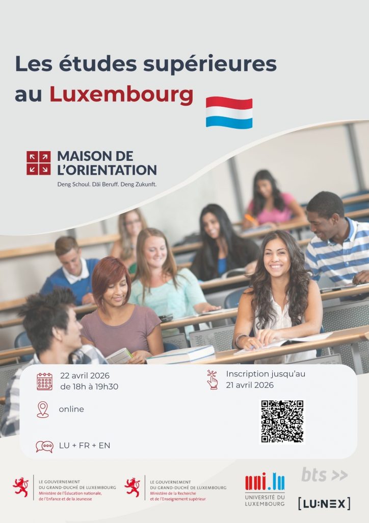 Nous t’invitons à une séance d’information spécialement destinée aux jeunes pour explorer les opportunités d’études supérieures au Luxembourg.