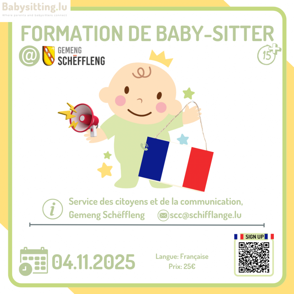 Rejoigne notre formation en babysitting certifiée et apprends des compétences essentielles pour une garde d’enfants sûre et amusante. Avec ce certificat tu pourras t’inscrire sur le site babysitting.lu et faire tes premières expériences dans la garde d’enfants.