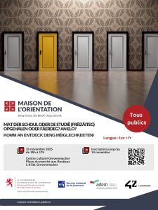 Séance d’info – Mat der Schoul oder de Studie (fréizäiteg) opgehalen oder fäerdeg ? An elo?